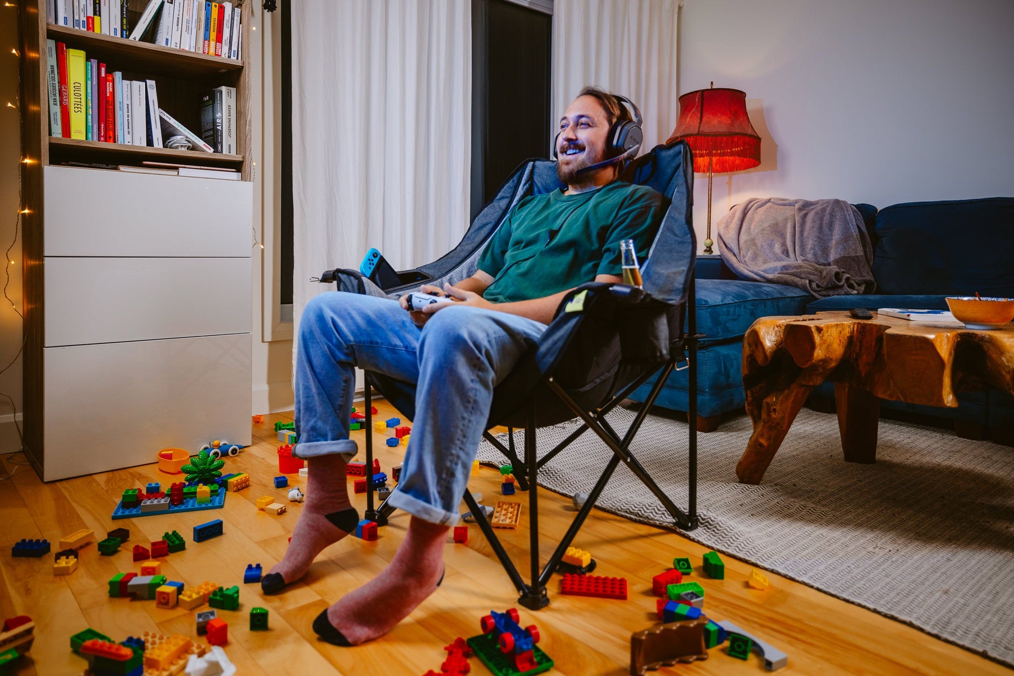 Yes, enjoy a built-in cup holder, stem bottle holder, controller and snack slots, plus a retractable headphone hook.